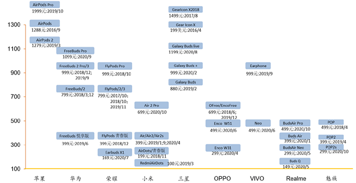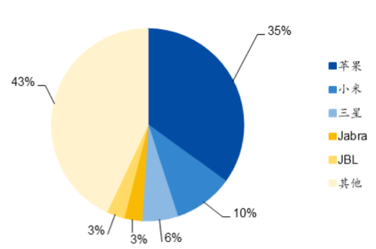 Fra et merkedistribusjonsperspektiv ble TWS-headsetmarkedet først detonert av Apple. Etter flere år med utvikling har produktet AirPods en meget høy markedsandel i mellom-til-høy-end-markedet. I følge analysedataene fra Counterpoint, fra og med andre kvartal 2020, er de tre beste selskapene i TWS-markedet Apple (35 prosent), Xiaomi (10 prosent) og Samsung (6 prosent). marked.